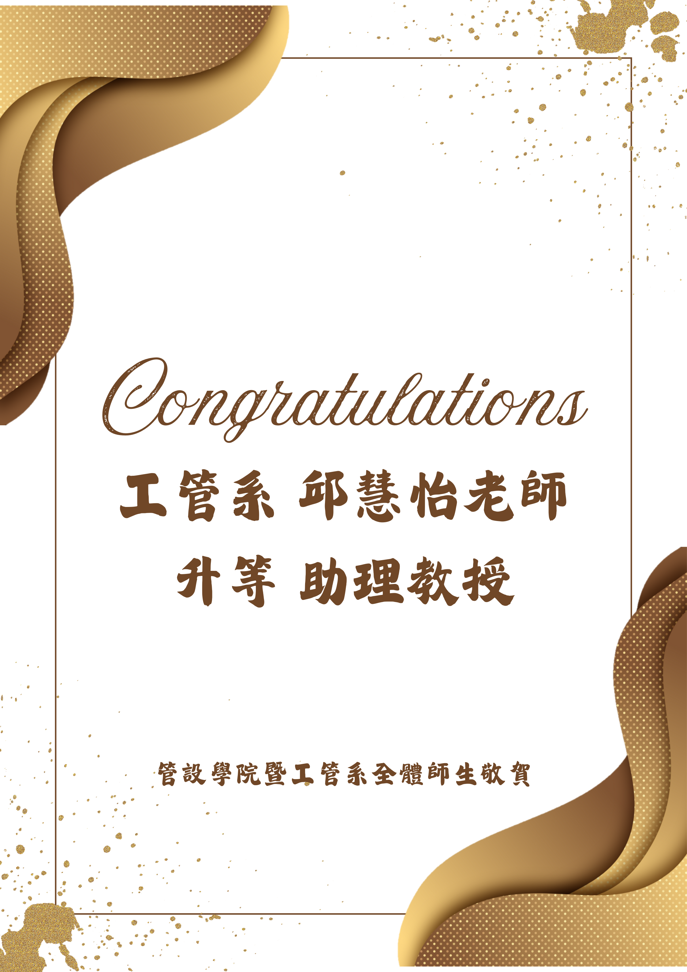 恭賀!管設學院工業工程與管理系 邱慧怡老師 通過學位論文送審升等助理教授