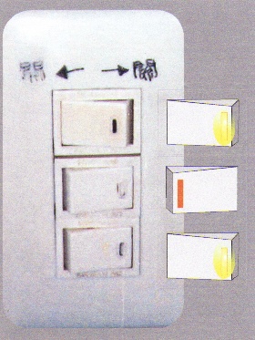*這是家中的開關器,上頭故意標示開與關,主要是為了標示清楚,若沒有標示,根本無法了解此接線錯誤的開關器。