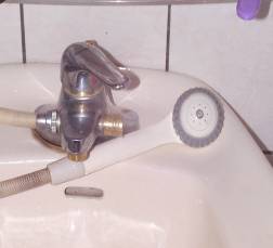 ※右圖的衛浴水龍頭調整水的冷熱是用左右旋轉來控制,但水溫的適當常是用手去觸碰來調整冷熱,麻煩且危險。