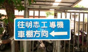 ☉更改標誌字體順序為『往明志工專』『機車棚方向←』等兩行。
