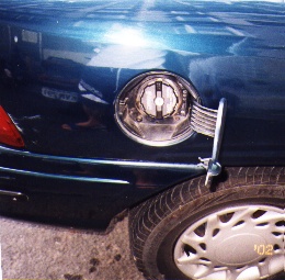 *這個汽車加油口加油時需要下車,使用鑰匙才能打開,造成了駕駛者再加油時的不便,需要下車才能加油。【克萊斯勒NEON】